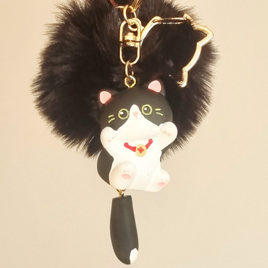 Brelok breloczek do kluczy kot kotek z pluszowym pomponem