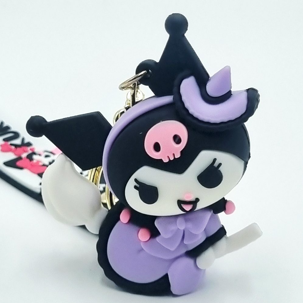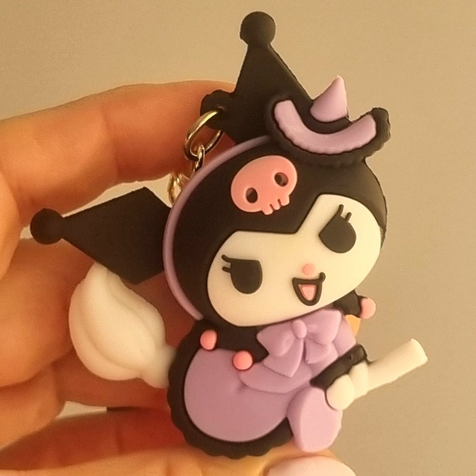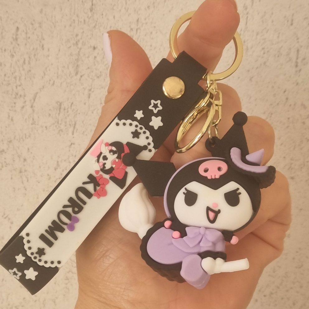 Kuromi, jedna z najbardziej ikonicznych postaci uniwersum japońskiej firmy Sanrio, znana z  filmów i seriali. Jest uroczym białym królikiem w czarnym kapeluszu z różową czaszką. Tą zbuntowaną postać  możesz znaleźć również na naszych brelokach, które posłużą Ci do trzymania kluczy, możesz przypiąć je do torebki, plecaka lub przymocować do portfela, aby dodatkowo wyróżnić się z tłumu.