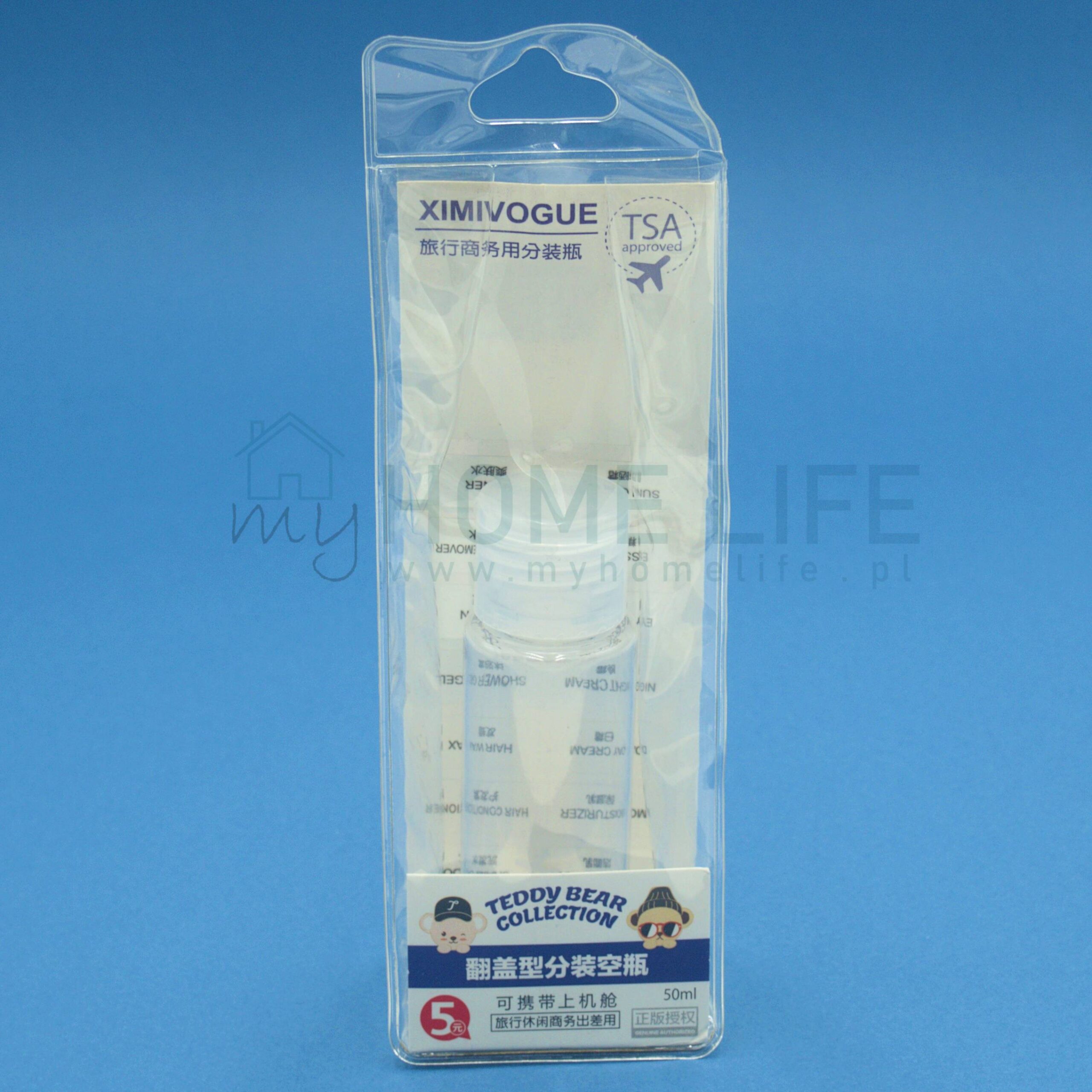 Buteleczka stworzona została z myślą o transporcie produktów płynnych w podróży samolotem lub do codziennego użytku na płyn dezynfekujący lub żel antybakteryjny.