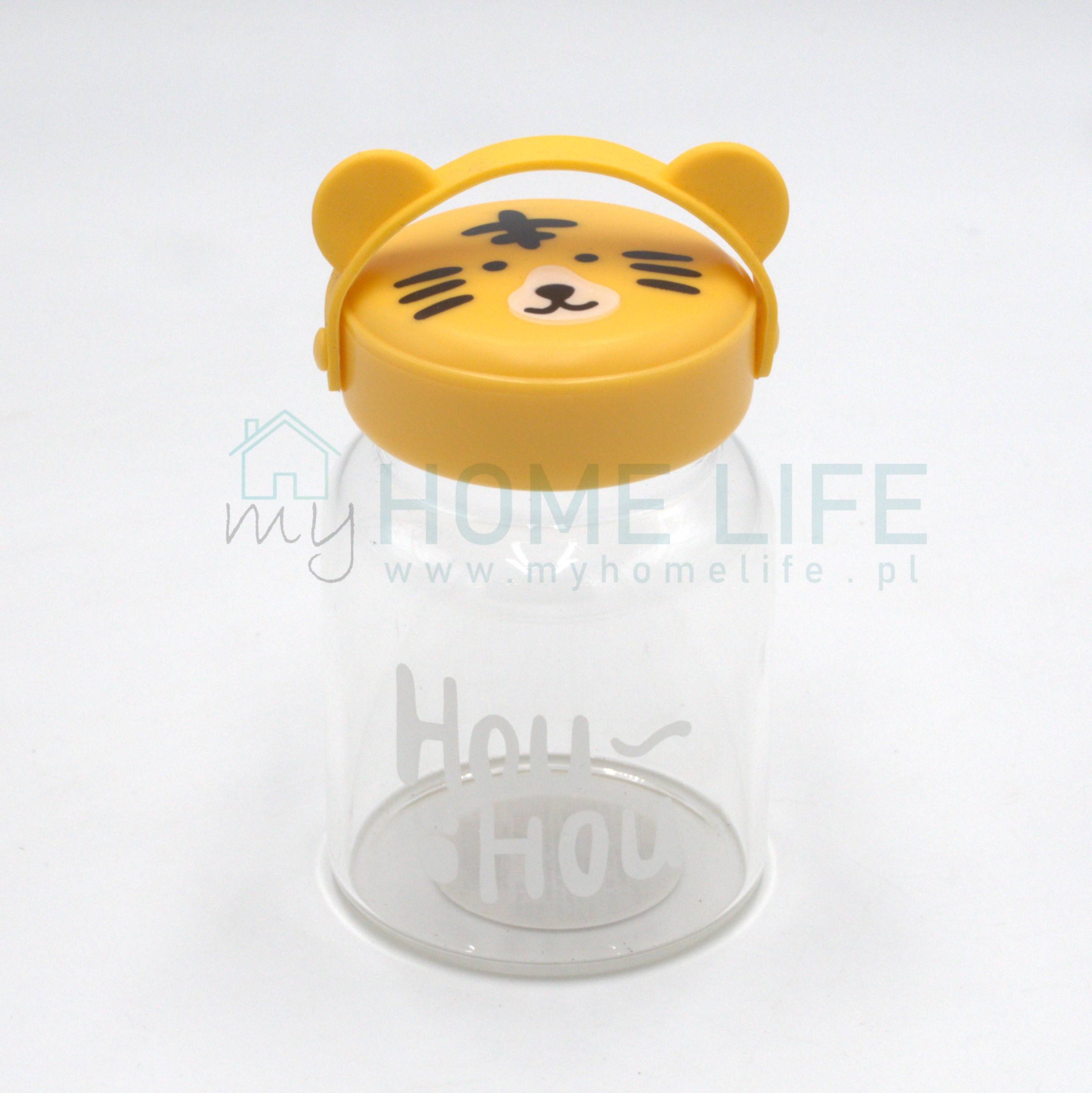 Butelka szklana słoik z uchwytem 350 ml tygrys