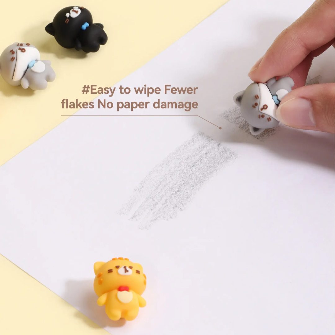 - gumka w kształcie kotka to atrakcyjny gadżet, idealny do ścierania grafitu bez pozostawiania smug.