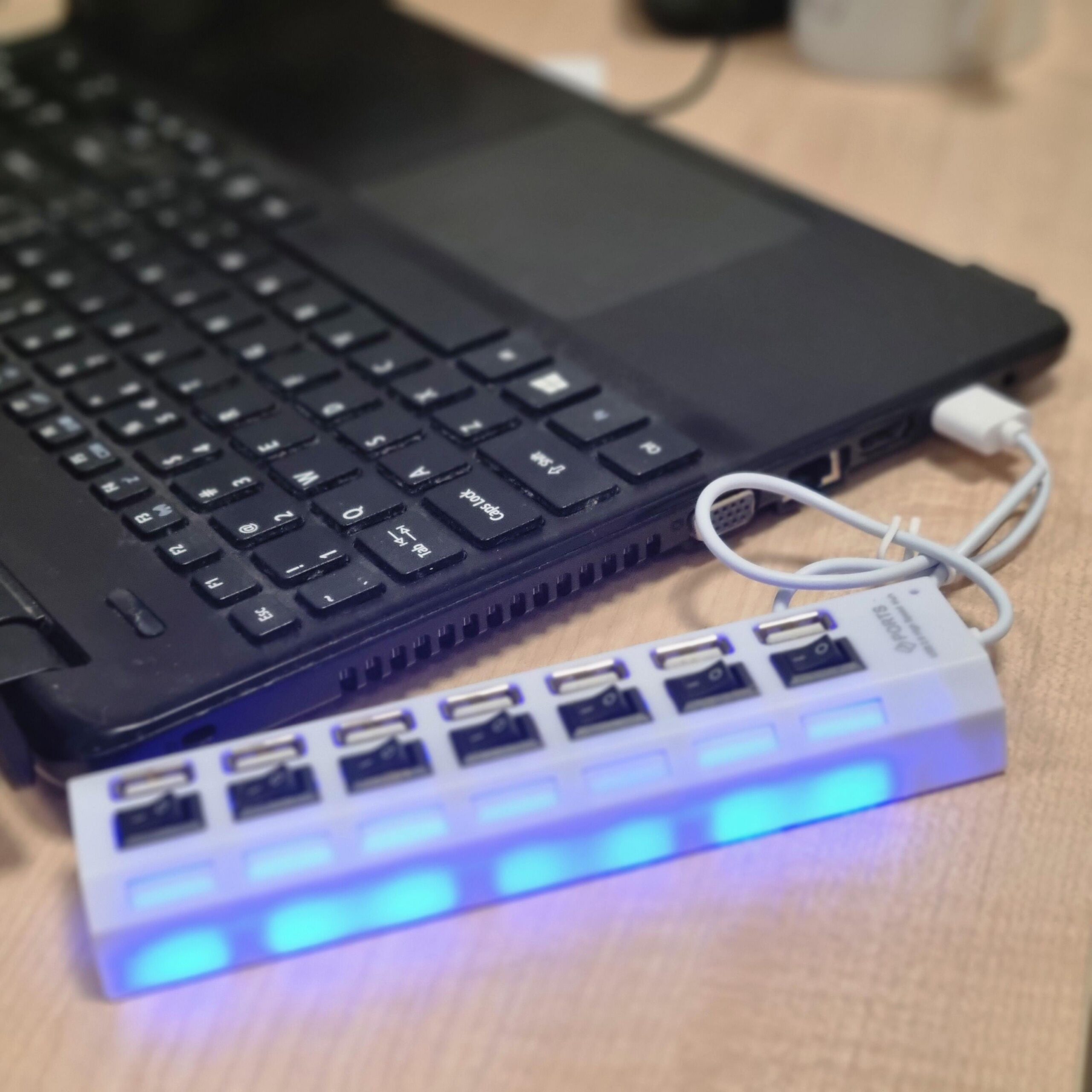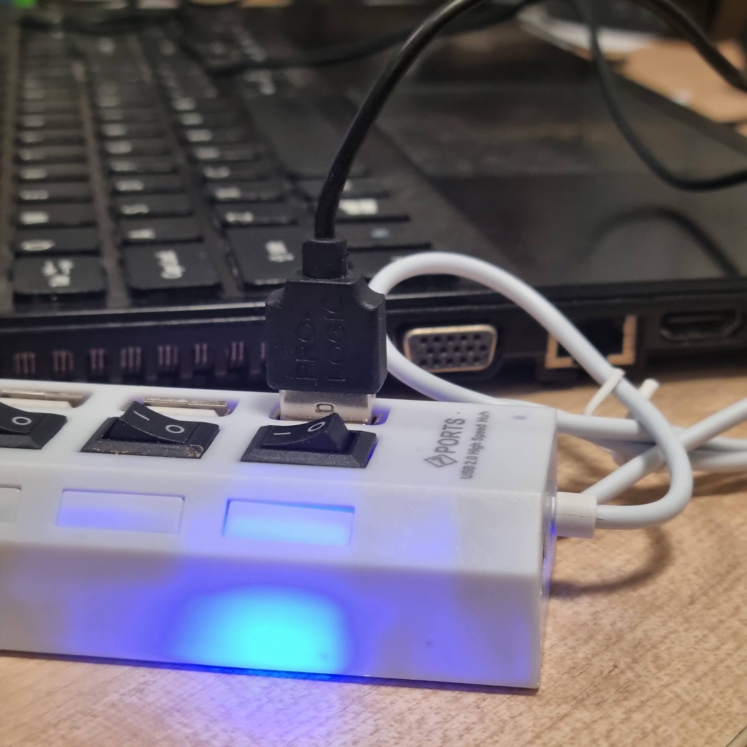 Kabel HUB USB 2.0 – 7 portów z kontrolkami i wyłącznikiem