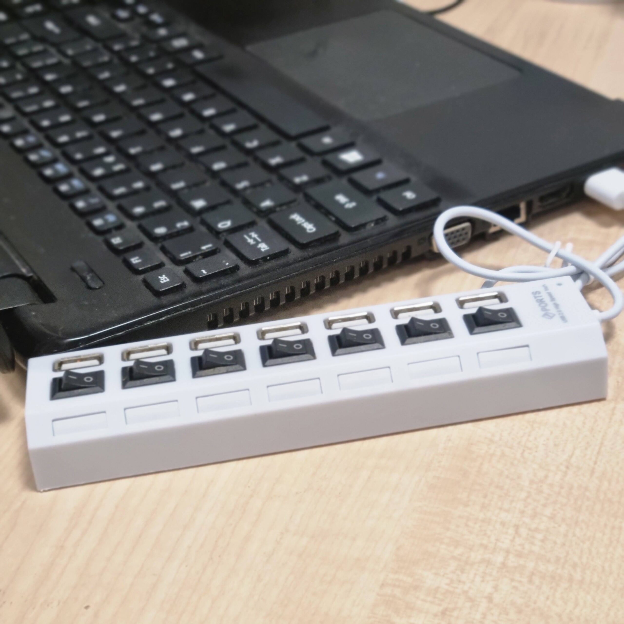 • Siedmioportowy hub USB z wyłącznikiem przy każdym gnieździe