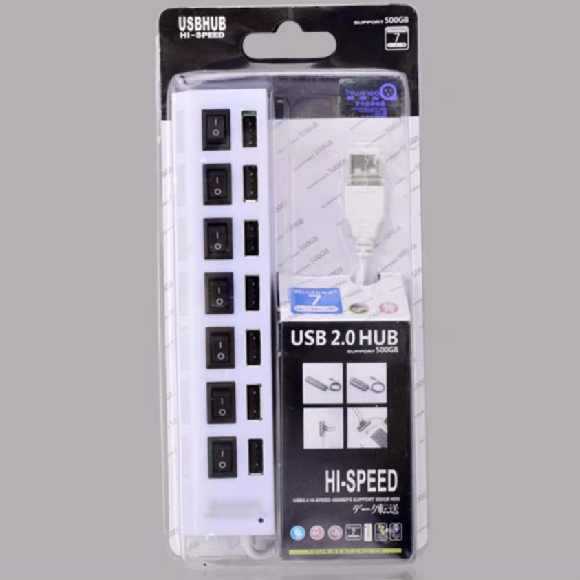 Niewielki hub USB 2.0 FS pozwalający na wyłączenie poszczególnych urządzeń podpiętych do jego portów USB, jak i wizualną ocenę liczby włączonych urządzeń. Ma wbudowane złącze do zewnętrznego zasilacza, dzięki czemu może pełnić rolę huba aktywnego. Przewód o długości 40cm, 7 gniazd USB.