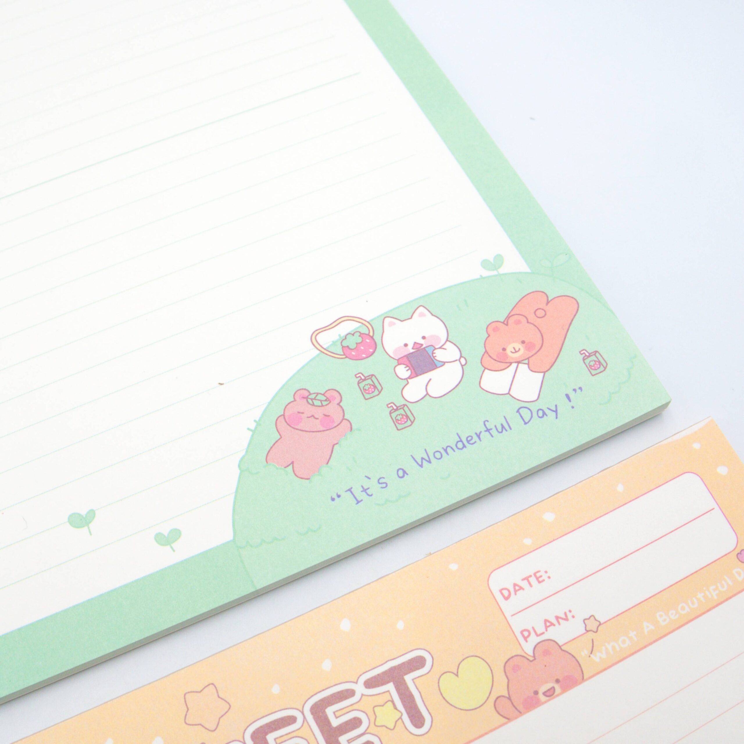 • środek kolorowe kartki w szeroką linię, wszystkie kartki takie same jak strona główna