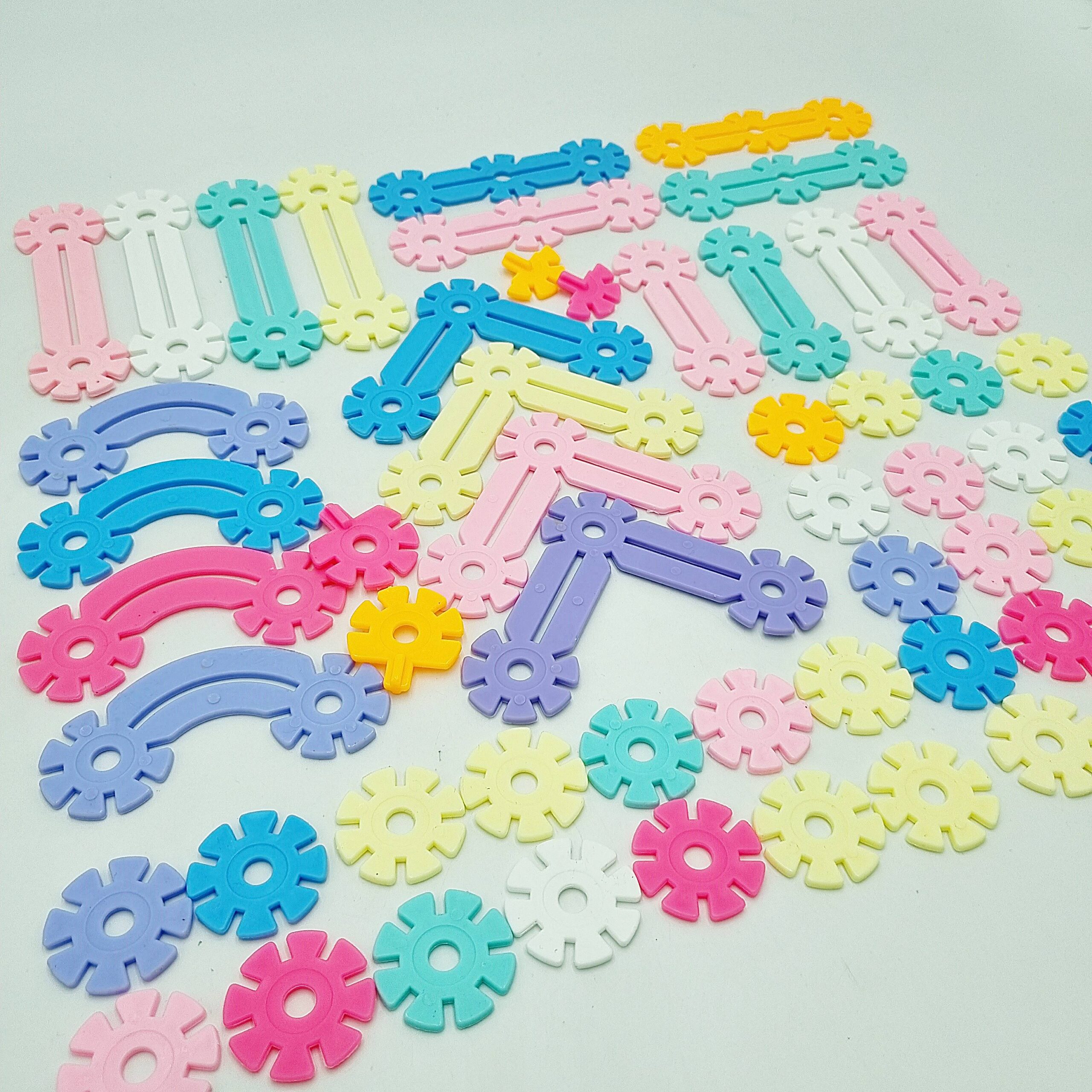Klocki przestrzenne Snow Flakes to zabawka do samodzielnego zaprojektowania i zbudowania. Zestaw składa się z wielu kolorowych, plastikowych płatków i pozwala na dowolne budowanie wszystkiego co wymyśli dziecko. Zabawka, która przemieni dziecko w małego architekta, pobudzi wyobraźnię i pomoże rozwinąć zdolności konstruowania. Klocki można ze sobą łączyć na niezliczoną ilość sposobów, układać kolorowe zwierzątka, budowle, wzory. Super zestaw zapewni każdemu dziecku mnóstwo wesołej zabawy.