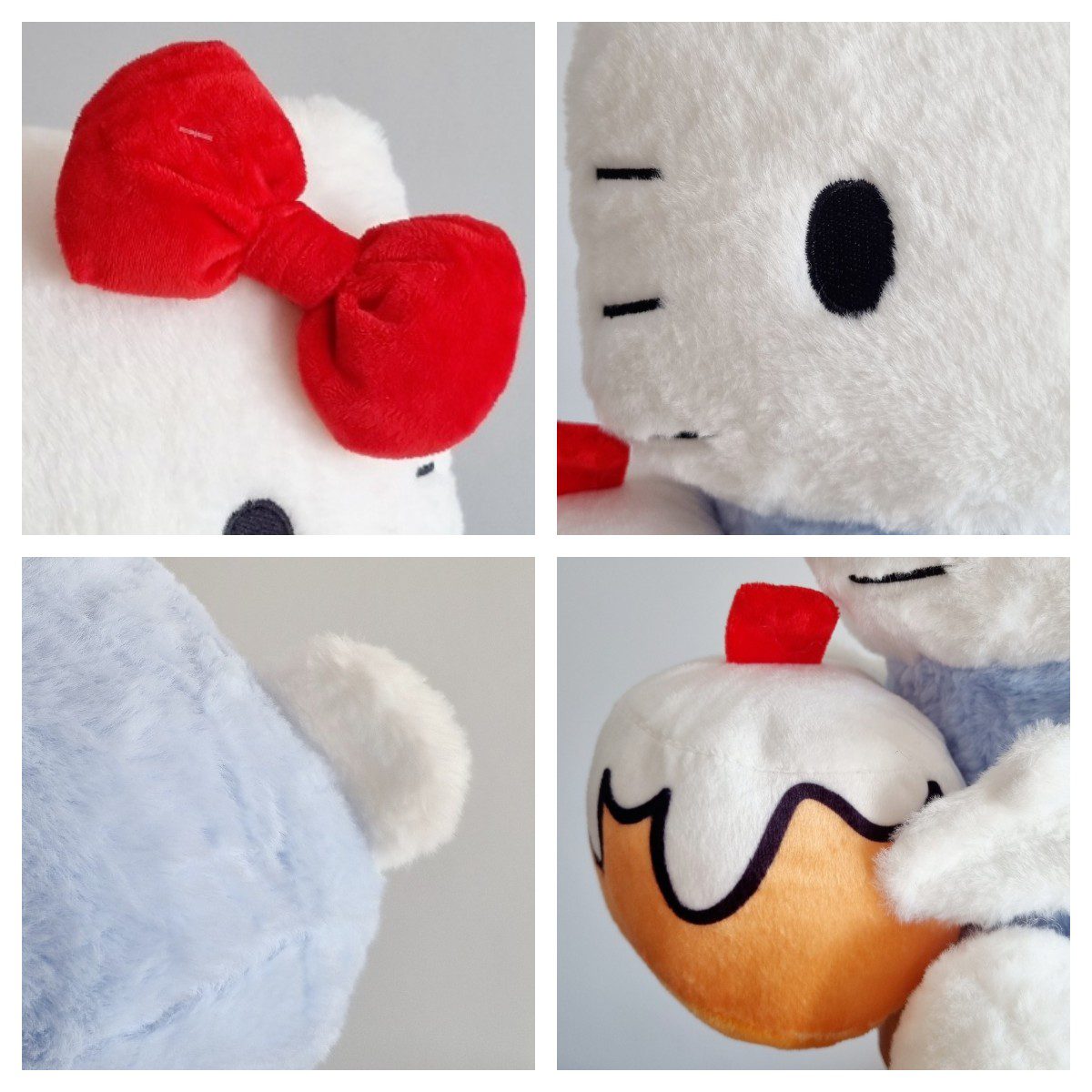 Poznajcie uroczą maskotkę Hello Kitty w której nie sposób się nie zakochać od pierwszego wejrzenia. Pluszak, ubrany w niebieski strój, z wielką czerwoną kokardą na głowie trzyma w rączkach babeczkę urodzinową. Jest niesamowicie miękka i urocza. Idealna maskotka do przytulania.
