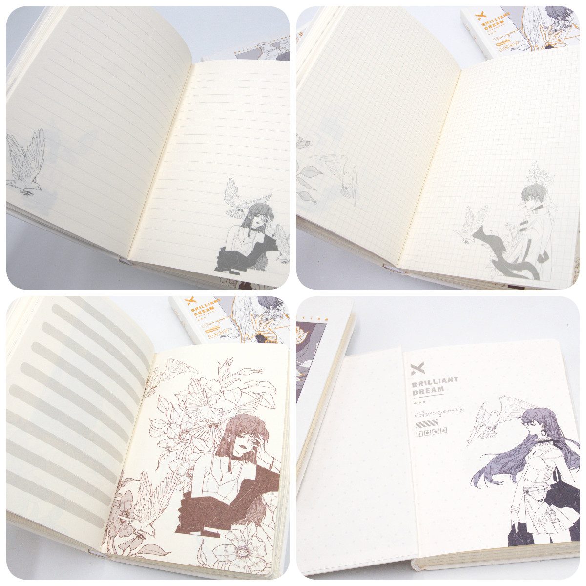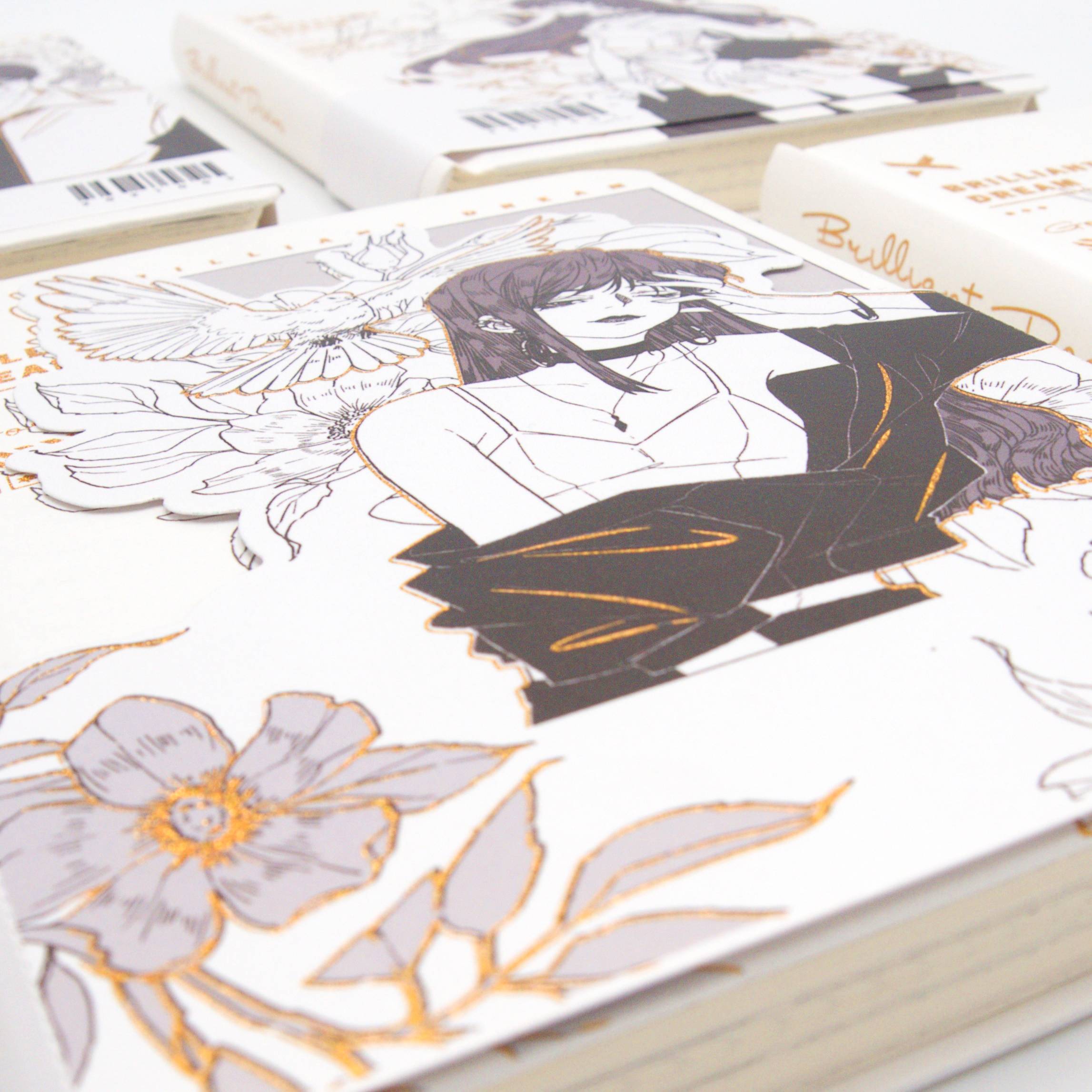 Notes z serii Brilliant Dream ze wzorami ze sztuki użytkowej japońskiej mangi.