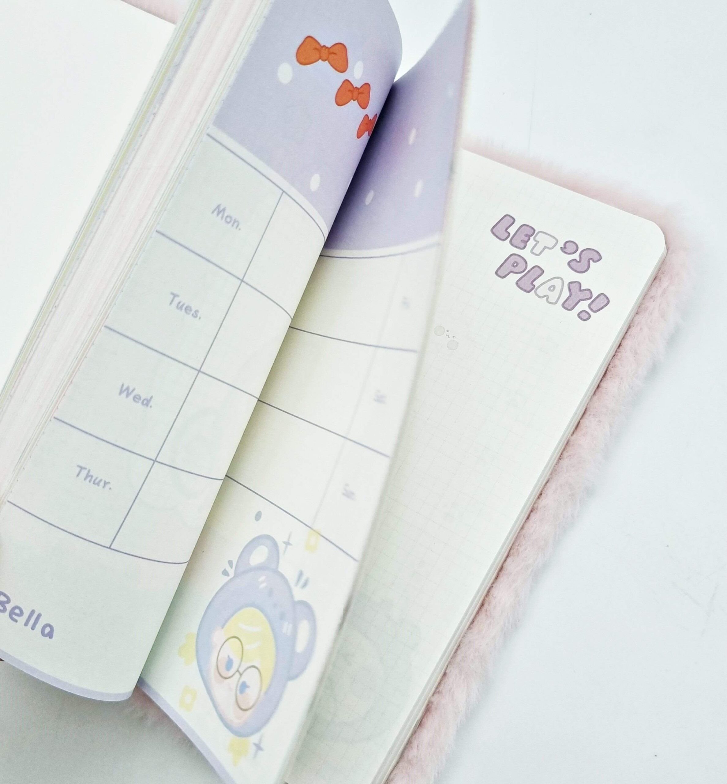 Notes pluszowy z kolorowymi obrazkami idealny na ważne zapiski, takie jak np.: daty urodzin czy imienin bliskich, terminarz spotkań lub dane kontaktowe.
