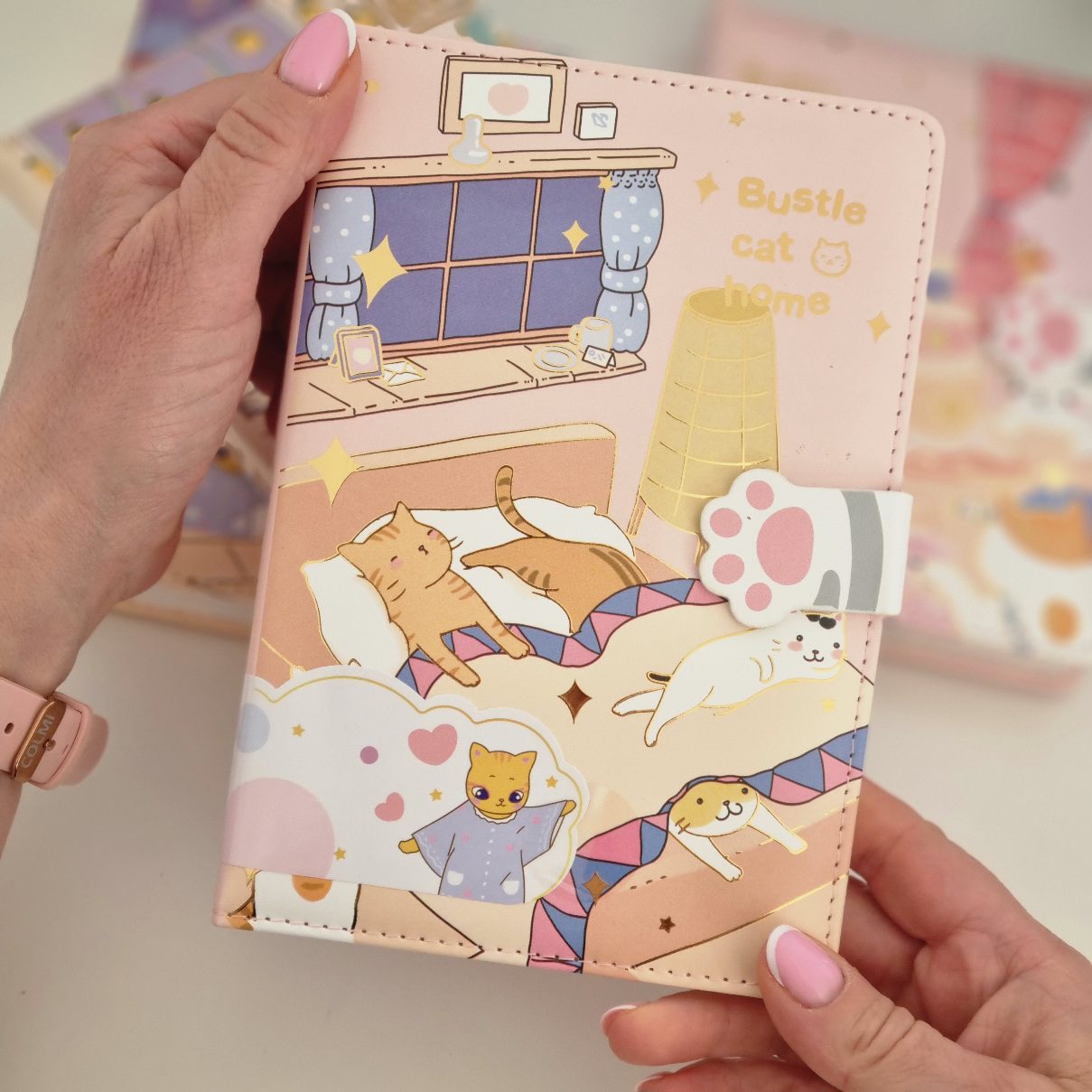 Poznajcie nasz uroczy notes z motywem KOTKÓW. Jest to produkt w stylu kawaii , który charakteryzuje się okładką z materiału przypominającego skórę oraz magnetycznym zapięciem w kształcie kociej łapki.