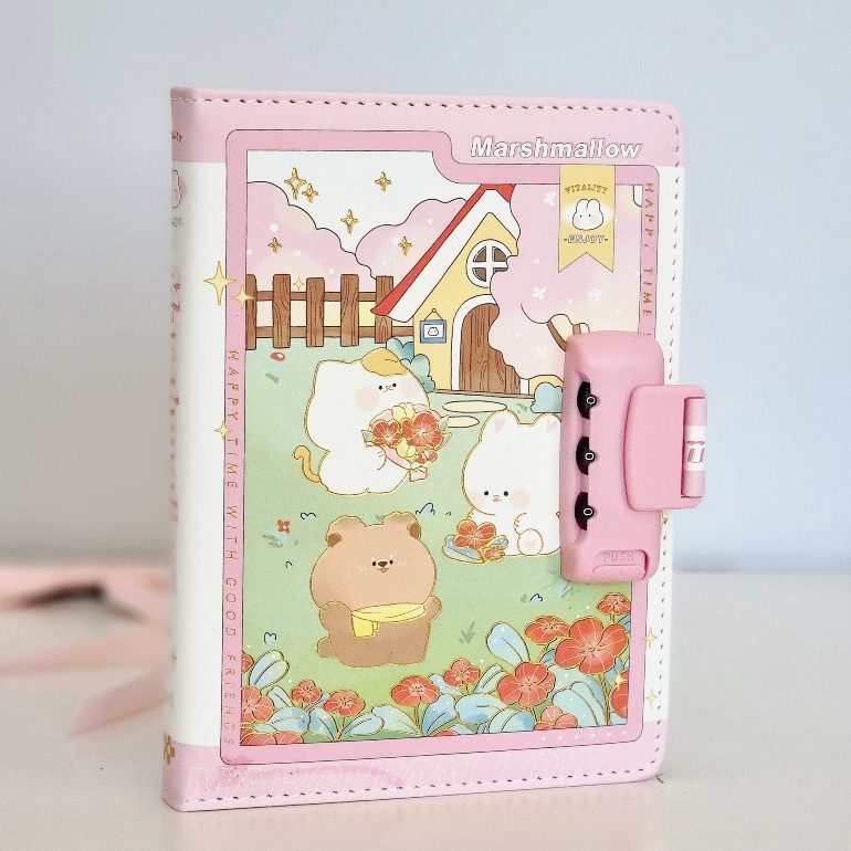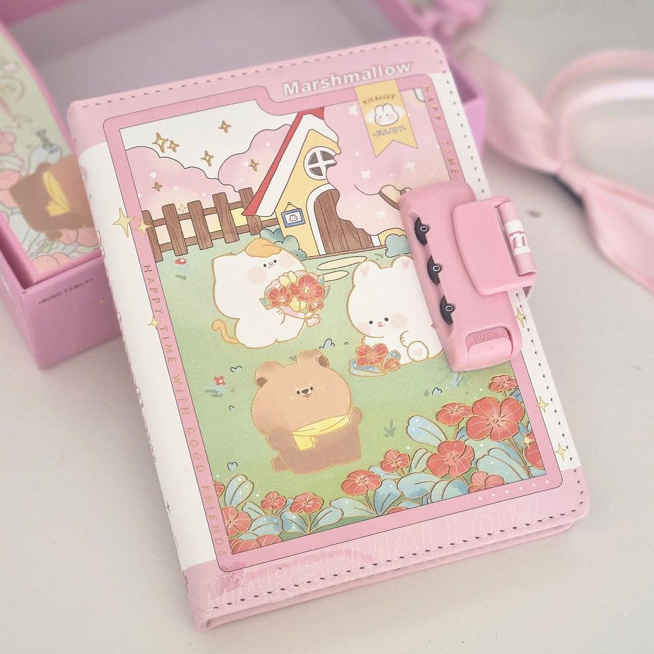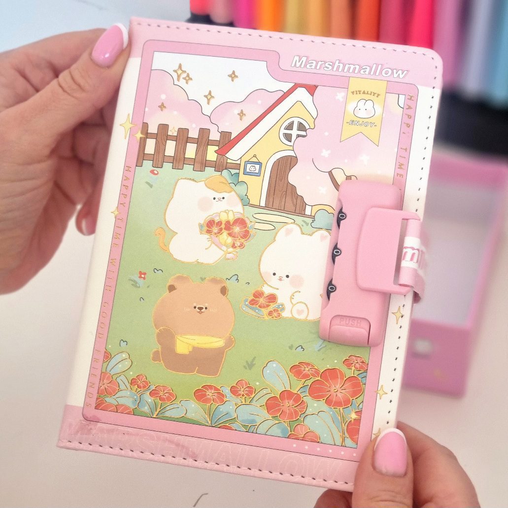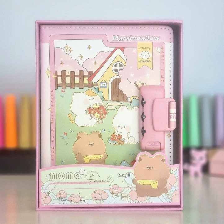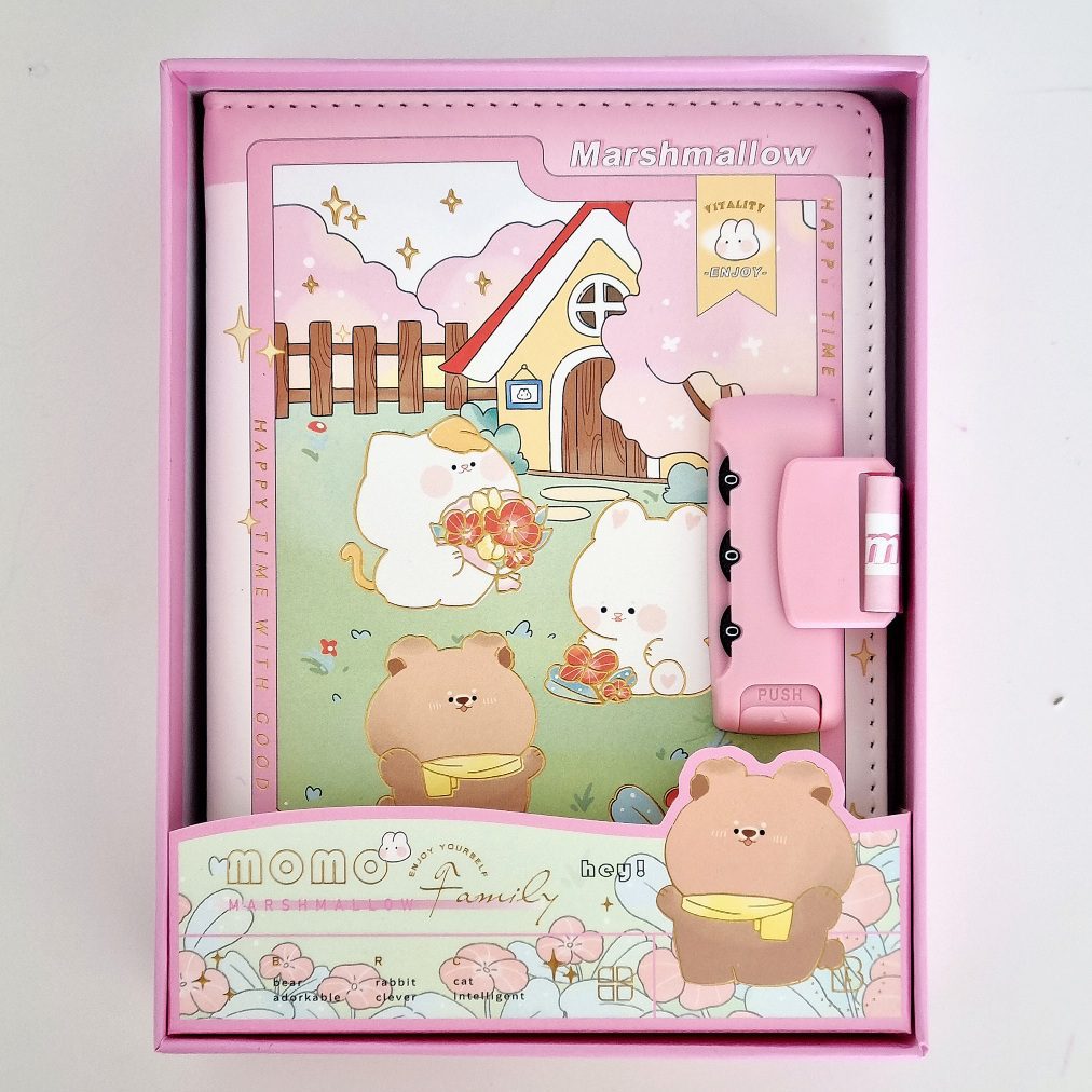 Notes skóropodobny pamiętnik w pudełku na szyfr z serii Marshmallow Momo Family 122k.