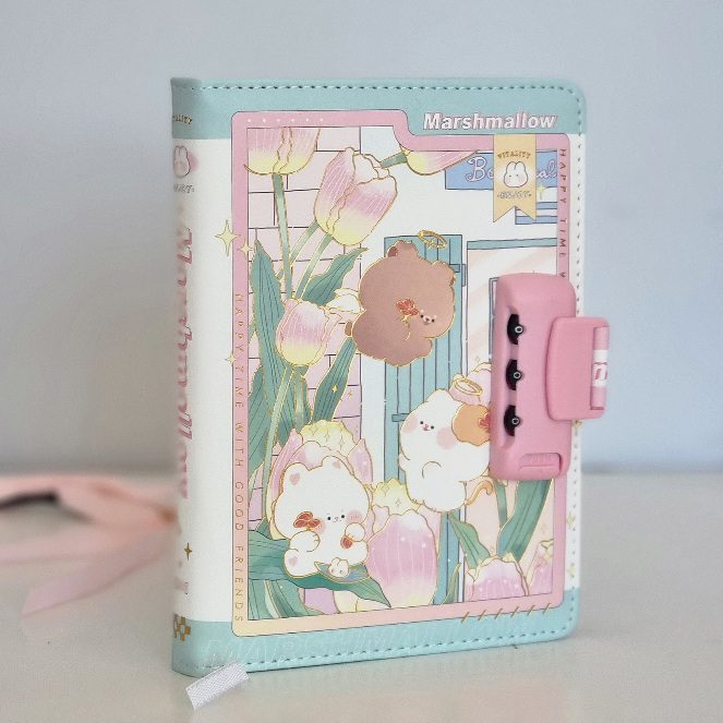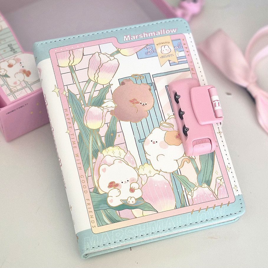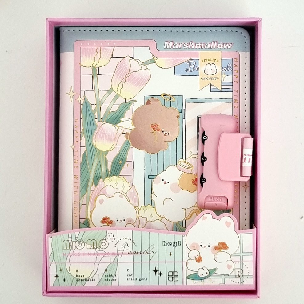 Notes skóropodobny pamiętnik w pudełku na szyfr z serii Marshmallow Momo Family 122k.