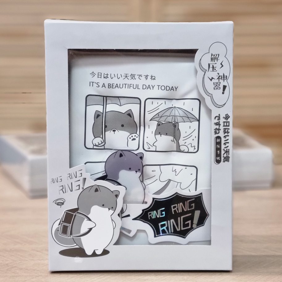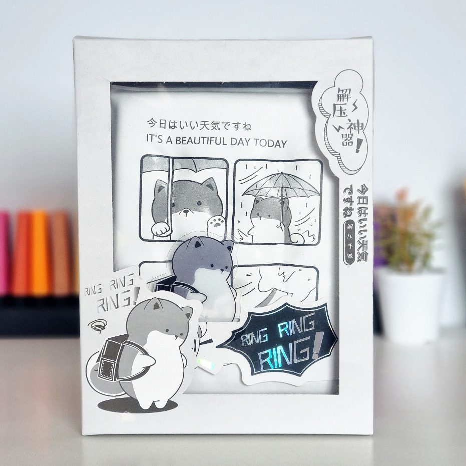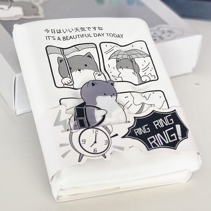 Poznajcie nasz uroczy notes z motywem PIESKA SHIBA z antystresową okładką squishy. Produkt, charakteryzuje się grafiką w stylu japońskim „kawaii”, przedstawiającą pieska z plecakiem wracającego ze szkoły w deszczu i w silnym wietrze, z japońskim napisem 今日は素晴らしい天気です co oznacza „DZIŚ JEST PIĘKNA POGODA” (z angielskim tłumaczeniem poniżej)