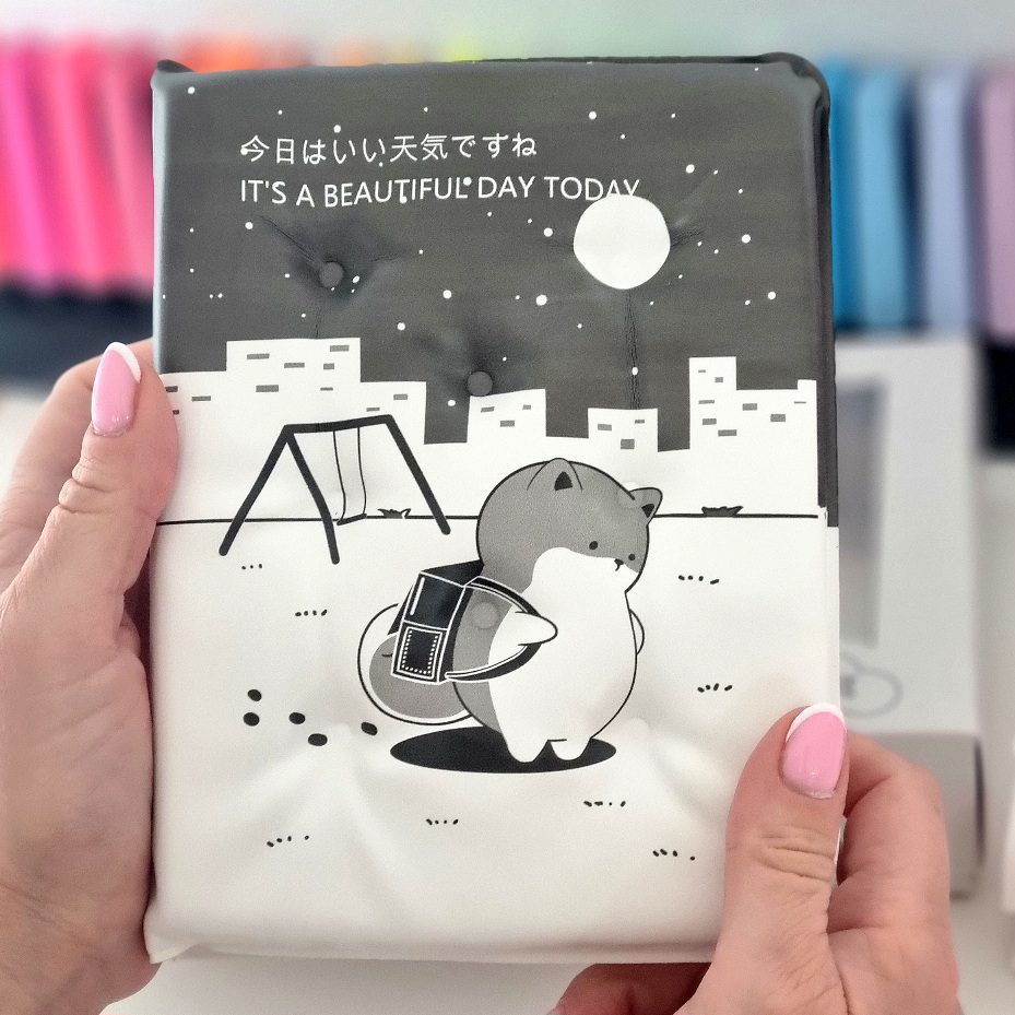 Poznajcie nasz uroczy notes z motywem PIESKA SHIBA z antystresową okładką squishy.