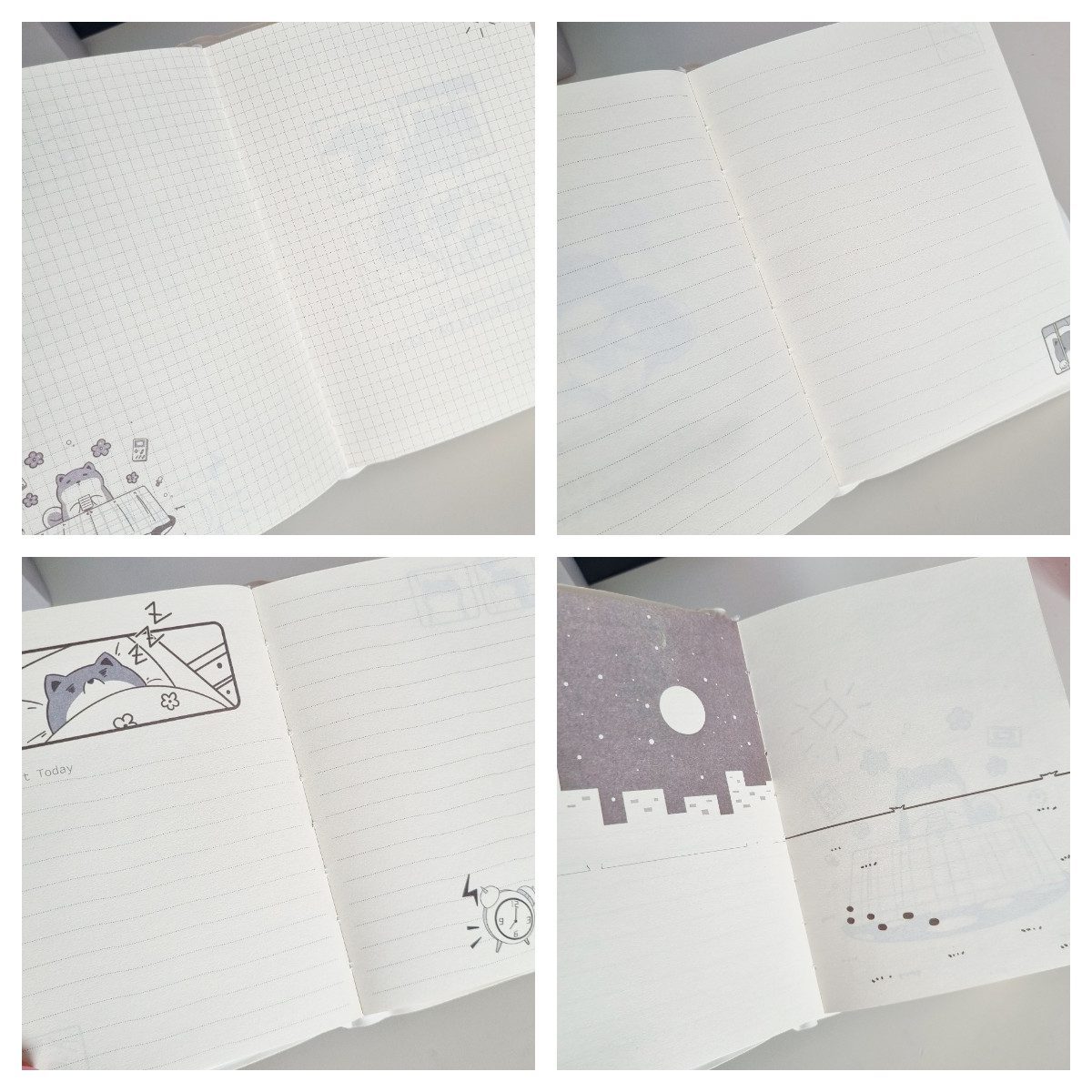 - środek kartki w kratkę, gładkie, w linie, w kropki, z obrazkami pieska (wszystko w odcieniach czarno białych)