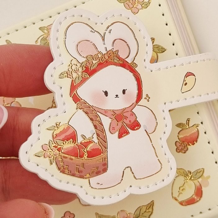 - design pełen uroku: okładka w delikatnym pastelowym odcieniu żółtego z motywem królika trzymającego koszyk z jabłkami, otoczonego jabłuszkami. Całość ozdobiona subtelnymi błyszczącymi detalami.