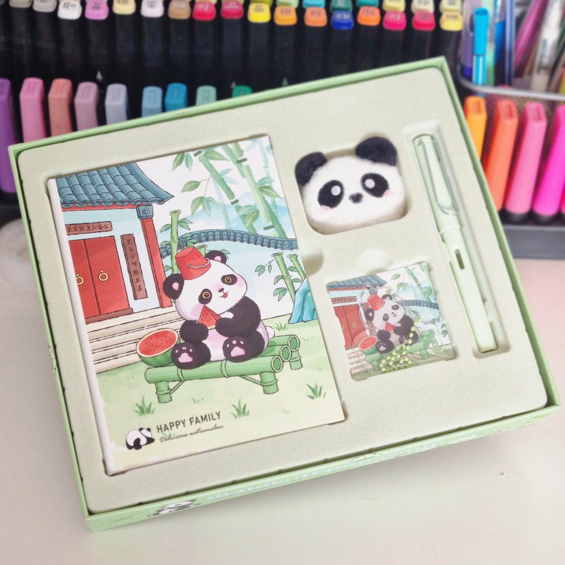 W skład zestawu wchodzi: notes, mini maskotka, ołówek, zawieszka oraz torebka prezentowa.