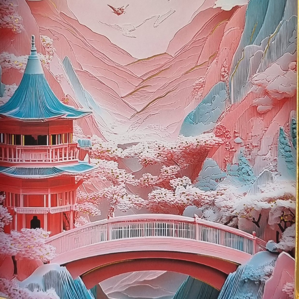 - wzór SAKURA (most, dom w stylu japońskim, wzgórza)