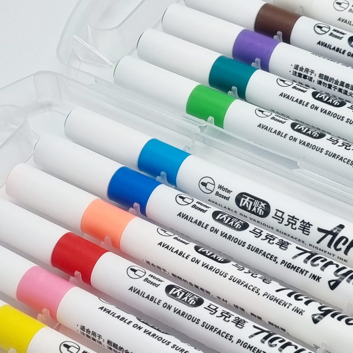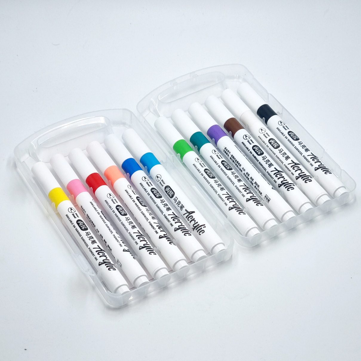 Niezależnie od tego, czy pracujesz na płótnie, drewnie, papierze, czy nawet tkaninie , markery akrylowe są gotowe na wyzwanie. Jedną z wyróżniających się cech markerów akrylowych jest ich krycie. Bogate, żywe kolory mogą z łatwością pokryć nawet najciemniejsze powierzchnie.