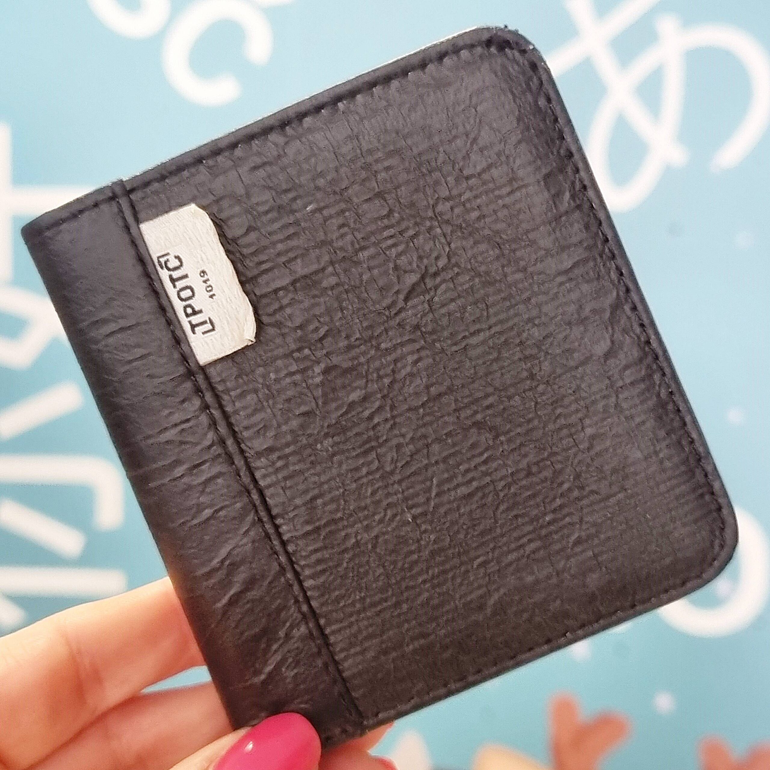 -Kieszonki w środku: jedna duża przegroda na banknoty oraz pięć na karty płatnicze (czy inne dokumenty). Brak kieszonki na bilony.
