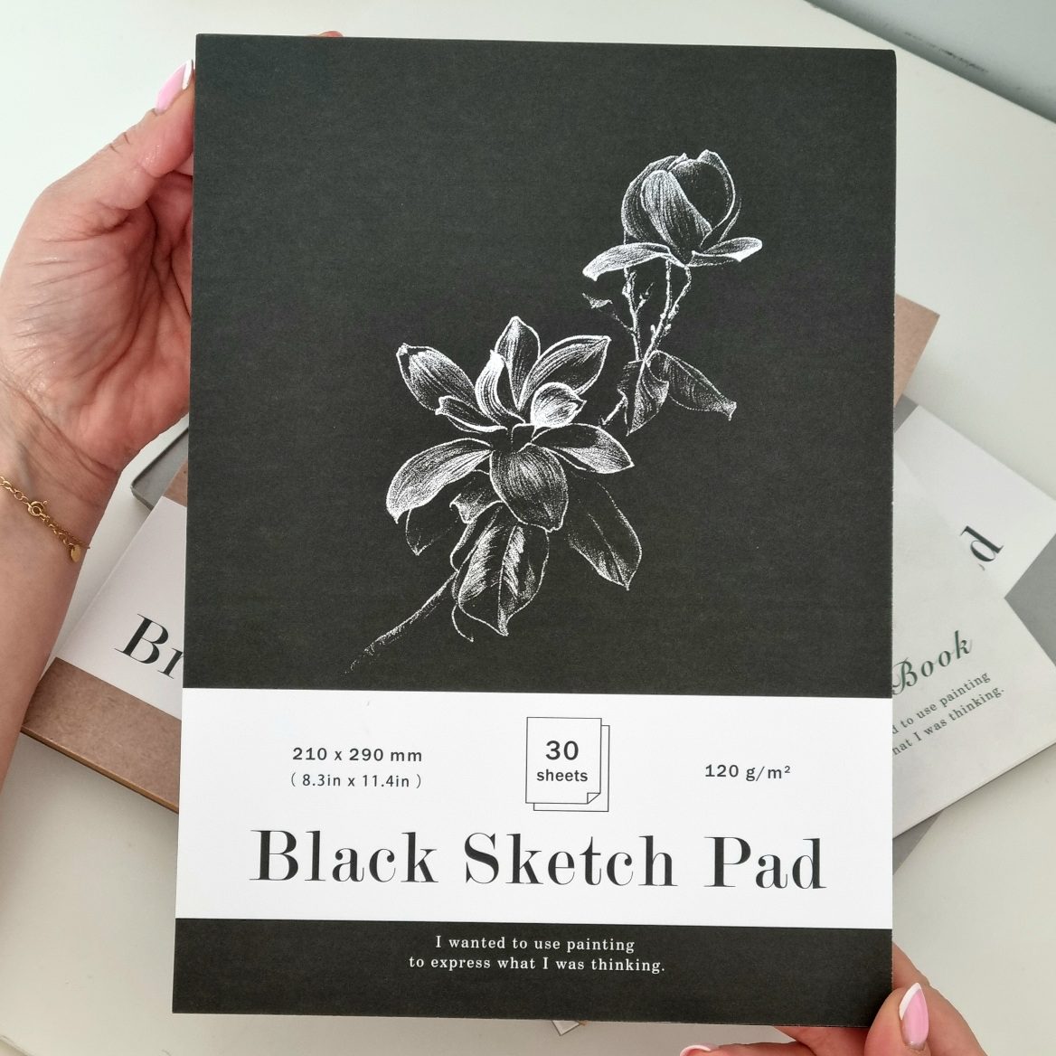 Szkicownik A4 z czarnym papierem 30 kart gramatura 120g/m3 wzór MAGNOLIA
