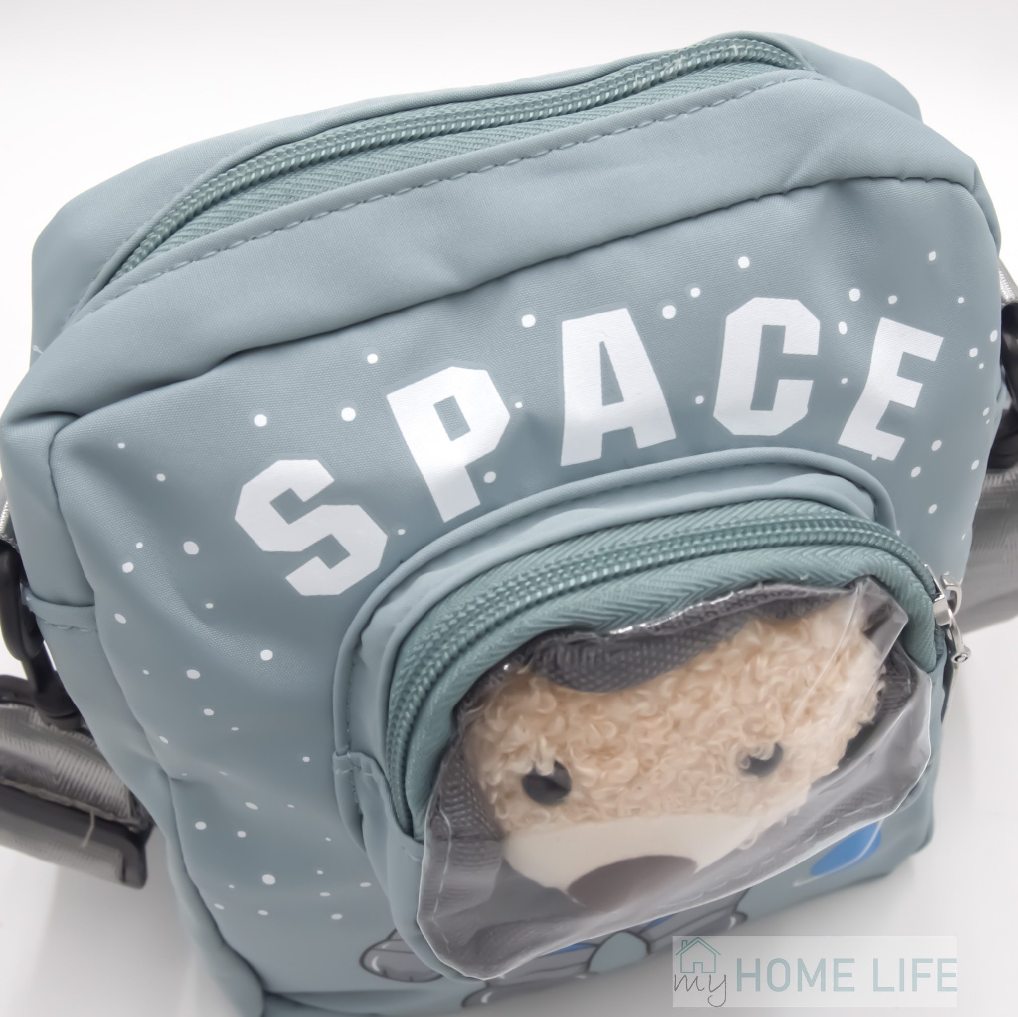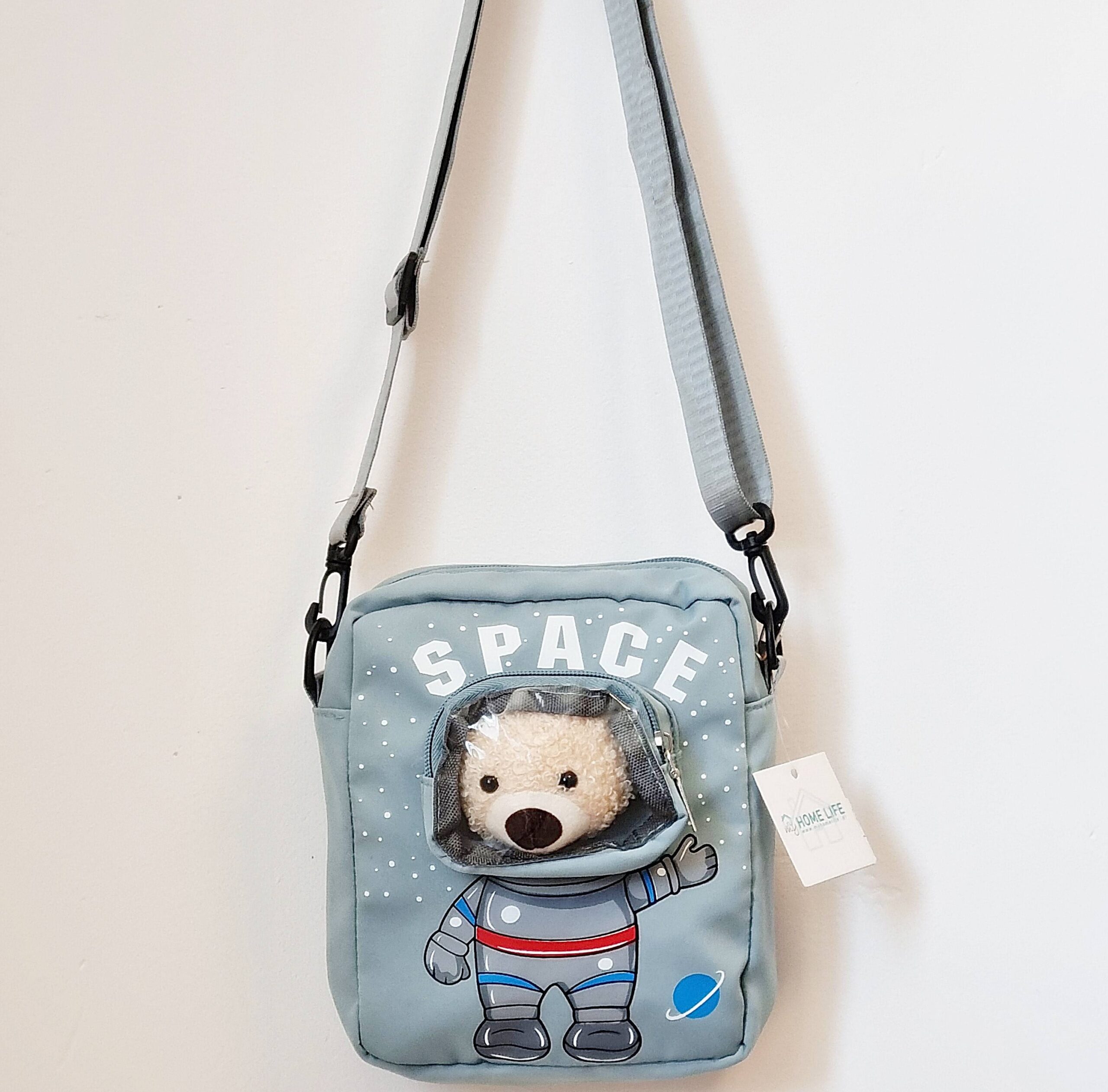 - wewnątrz komory jedna mniejsza kieszonka plus dodatkowo mała kieszonka z przodu w której jest przypinka misia