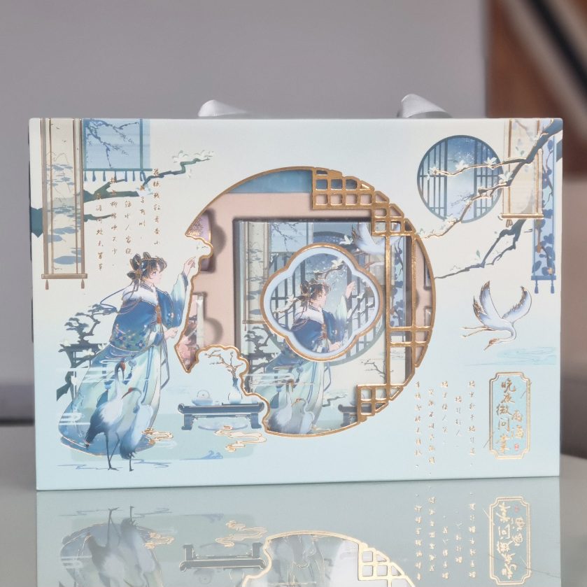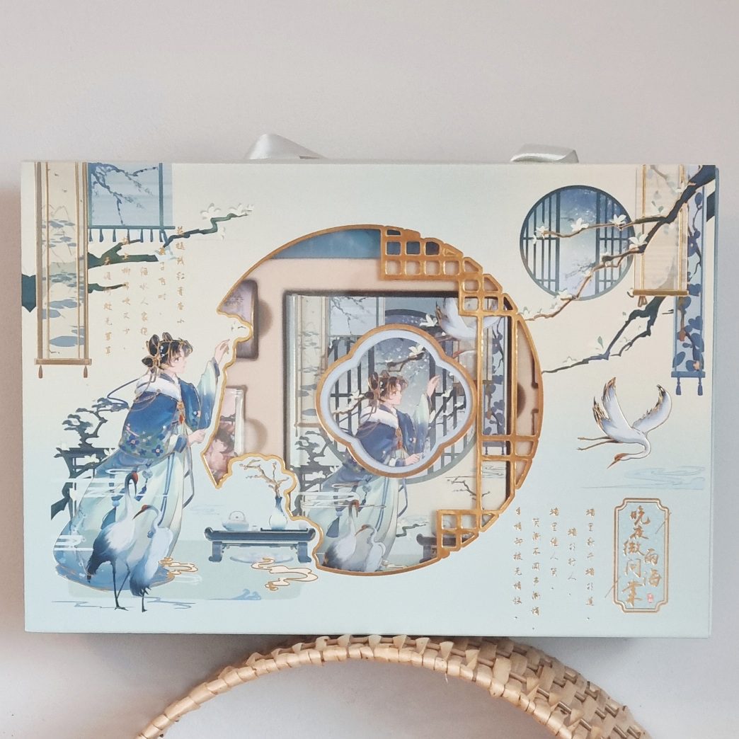 Zestaw prezentowy poetycki DUŻY „Deszczowe Morze” wzór żurawie AKCESORIA